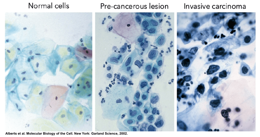 How is control of cell growth and size disrupted in cancer cells?